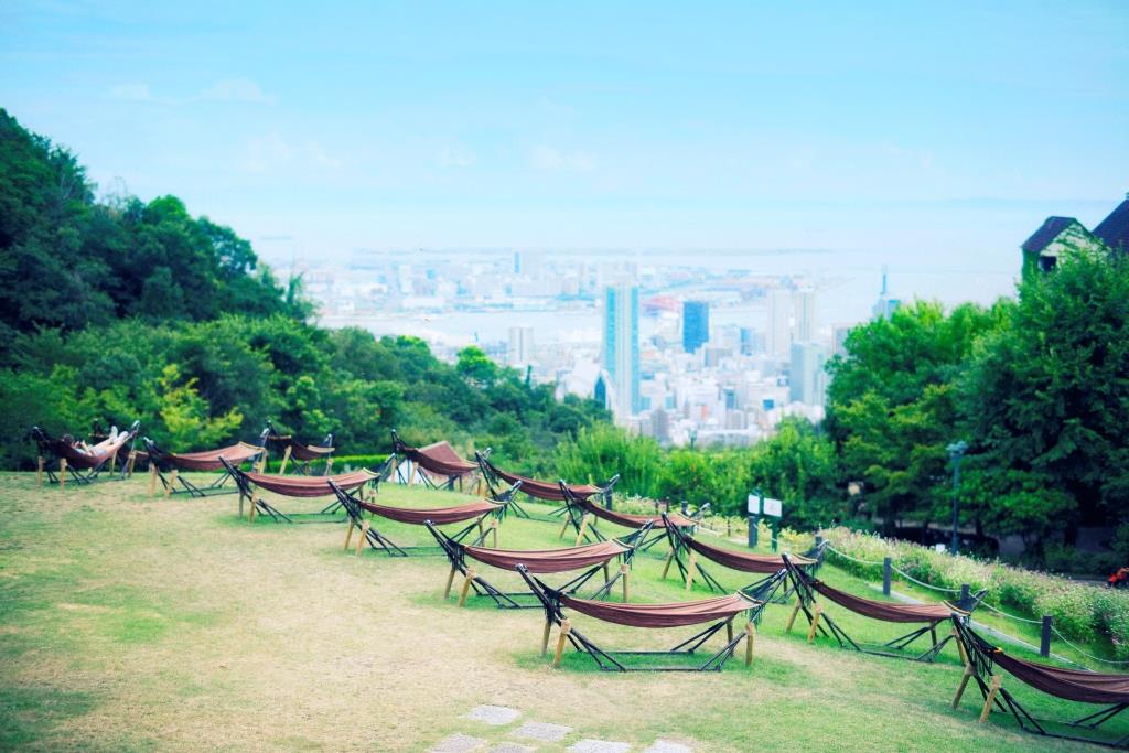 ระหว่างทางนั่งกระเช้าลอยฟ้านุโนบิกิขึ้นมาด้านบน สามารถมองเห็นเมืองโกเบและวิวของสวนแบบพาโนราม่า