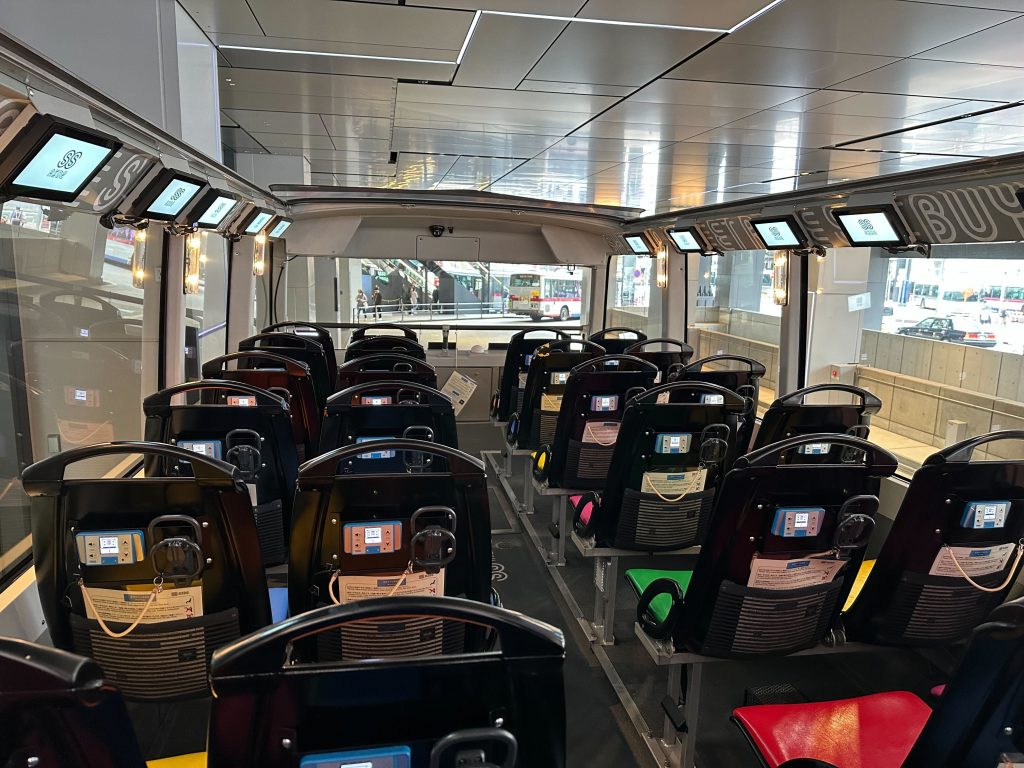 เพื่อให้เห็นทัศนียภาพโดยรอบ ที่นั่งส่วนใหญ่เลยจะอยู่ที่ชั้น2 และไม่มีหลังคา แต่หากฝนตกจะมีหลังคามาคลุมให้นะคะ